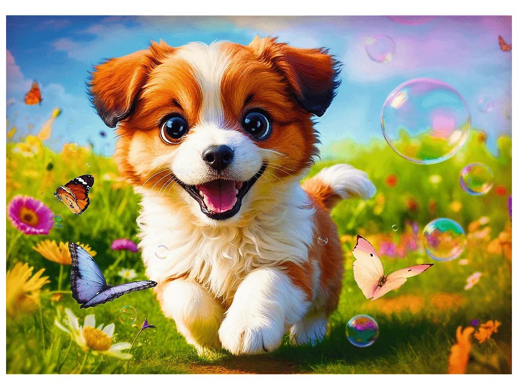 Puzzle Šťastné šteňa pozostáva z 500 prvkov a predstavuje roztomilé šteniatko.
