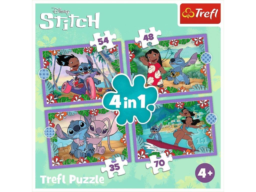 Trefl Puzzle Lilo&Stitch: Bláznivý deň 4v1 (35,48,54,70 dielikov)