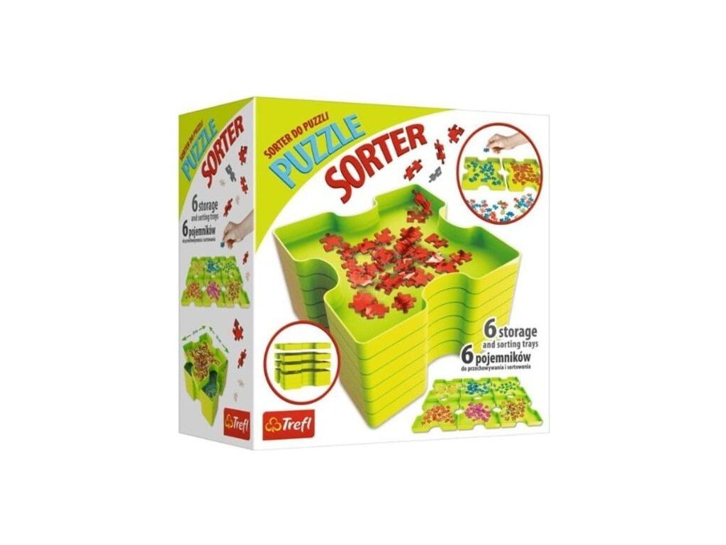 Trefl puzzleRozdelovník,výrobca Trefl.   Jednoduché triedenie - roztrieďte skladačky podľa ich farby. Pohodlné skladovanie a manipulácia .   Katalógové číslo 90816   Pre deti od 10 rokov.