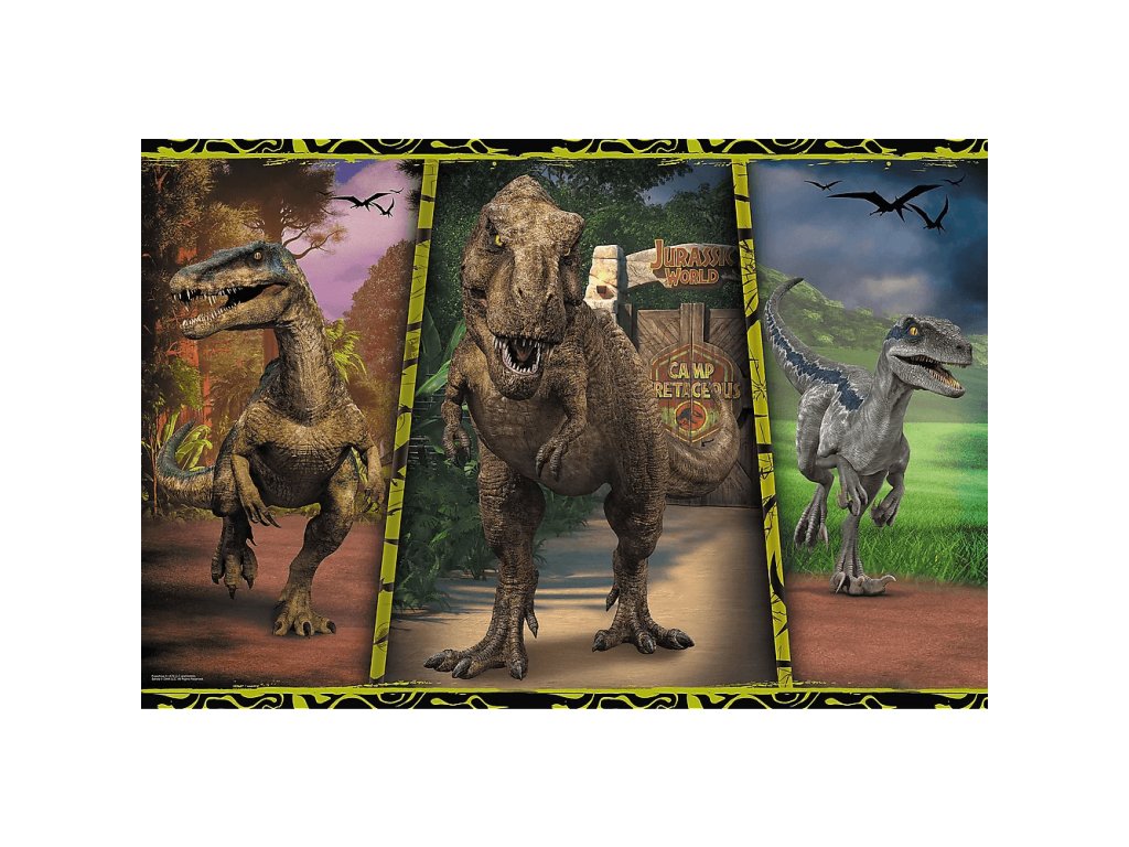 Farebné dinosaury sú puzzle, ktoré pozostávajú zo 104 veľmi veľkých dielikov, vrátane kúskov s netypickými tvarmi. Táto skladačka poteší malých nadšencov dinosaurov a fanúšikov animácie Jurský park: Kriedový tábor.